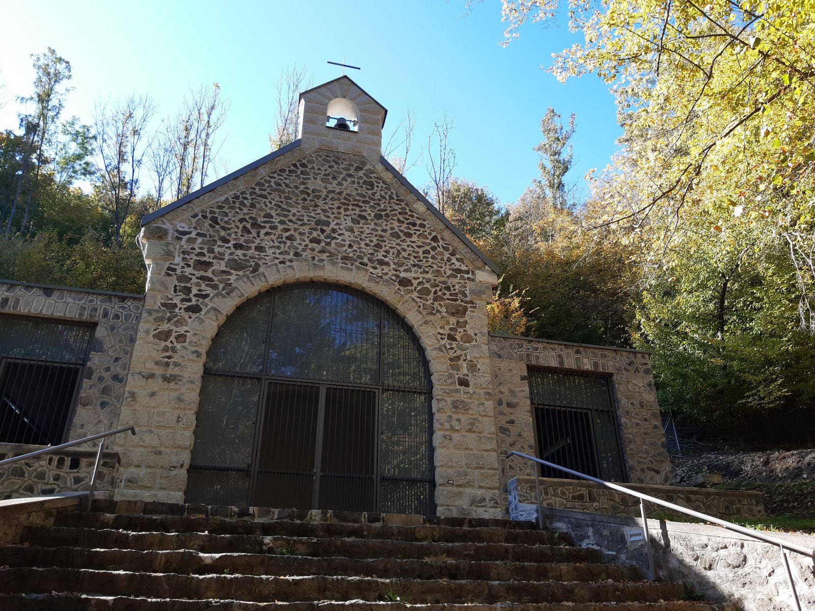 A mátraverebély-szentkúti kegyhelyen is a keresztút végén áll a Kálvária kápolna, amelyet 1933. áldozócsütörtökön, mennybemenetel ünnepén szenteltek fel. A Kálvária, vagyis a kereszthalál helyszíne, és mennybemenetel napja együtt emlékeztetnek minket Jézus Krisztus megváltó szeretetére. Ahogyan a Hiszekegyben imádkozzuk: „keresztre feszítették, kínhalált szenvedett és eltemették. Harmadnapra föltámadott az Írások szerint, fölment a mennybe.” A keresztény együtt látja a halált és a föltámadást, ezért is itt alakítottuk ki az urnatemetőt, a kápolna 2024-es újjáépítése során.